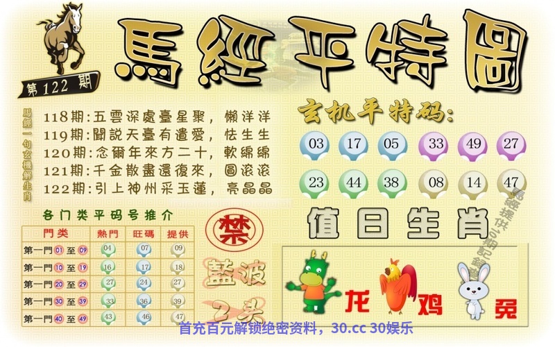 | 121期:男女两肖〖女肖+龙马〗开:兔15准 |
